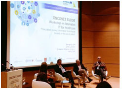 El Dr. Colomer, director de la cátedra, participó en una de las mesas redondas organizadas en el taller denominado Innovative IT for healthcare “The patient journey: Information Technologies focused on the cancer patient”. que tuvo lugar en el CNIO en abril de 2019.