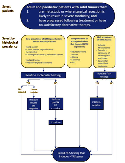 P. Garrido et al. Diagrama para la determinación de alteraciones en el gen NTRK en cáncer avanzado [Figura 1]. Recuperado de https://pubmed.ncbi.nlm.nih.gov/33620682/